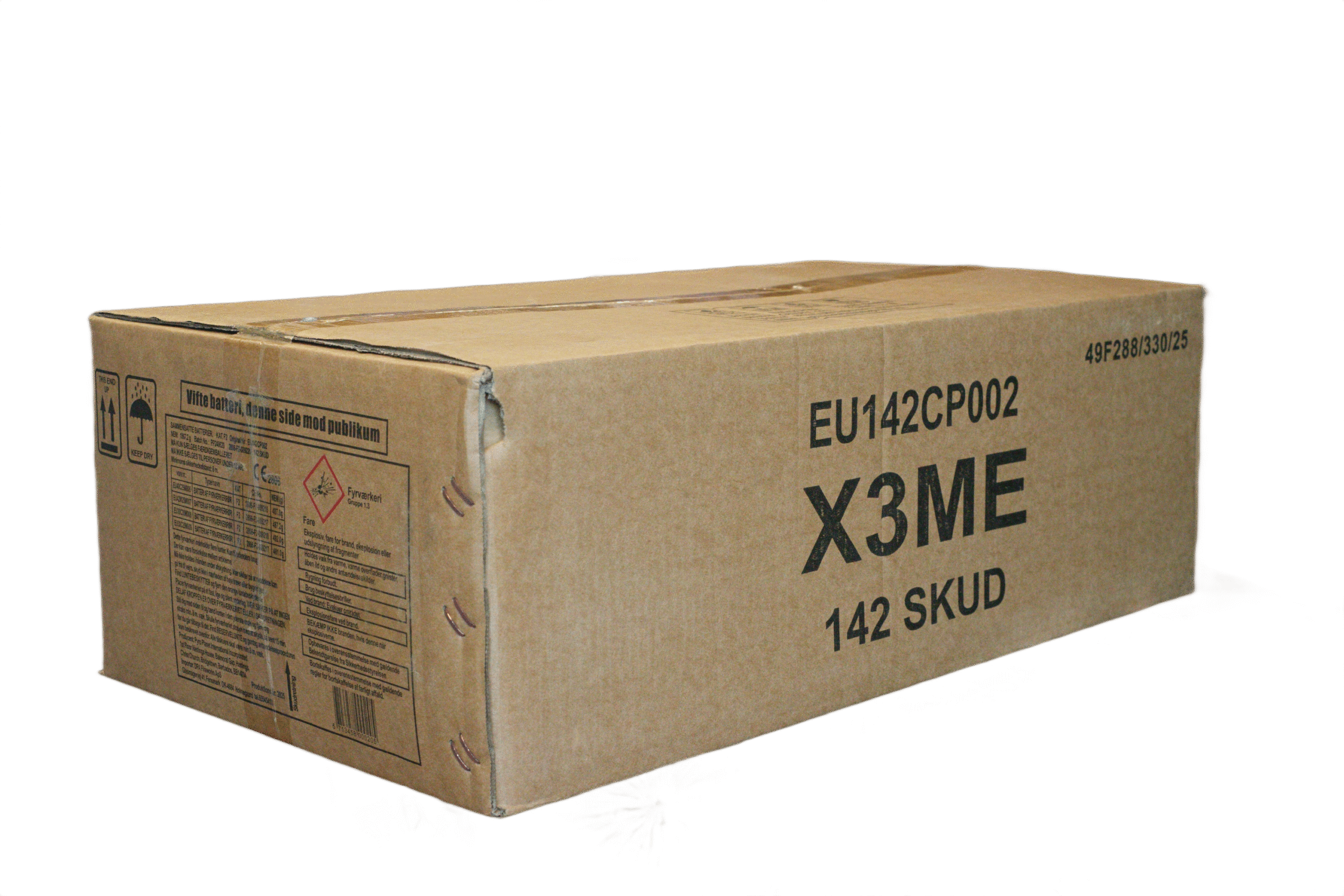 Må ikke sælges til personer under 18 år. Må kun anvendes udendørs. Mindste sikkerhedsafstand: 8 meter. Undgå overdækkede forhindringer. Må ikke affyres i nærheden af høje bygninger, træer eller lignede.